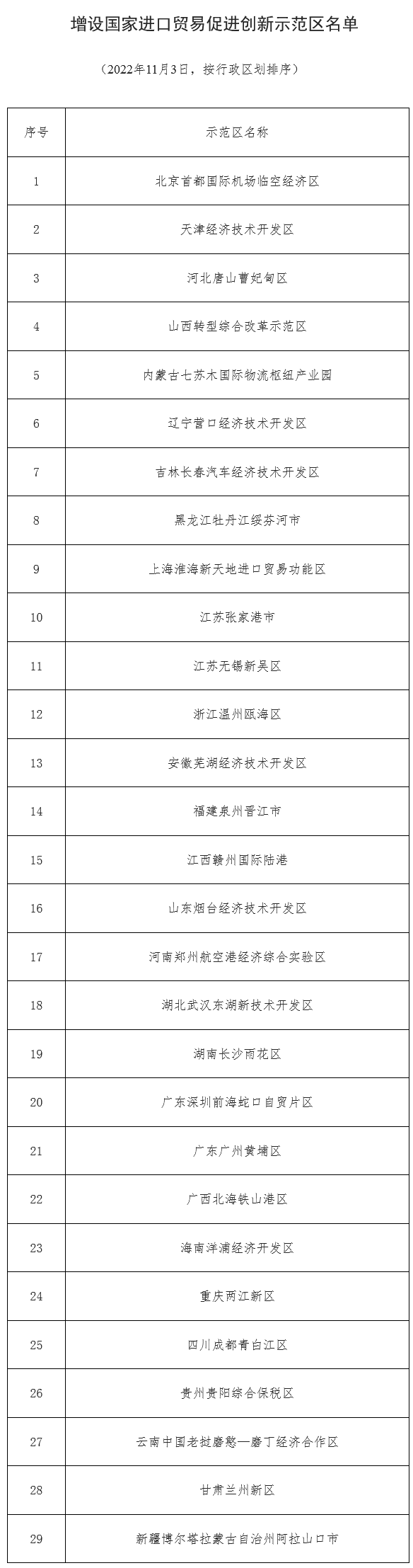 商务部、发展改革委、财政部、人民银行、海关总署、市场监管总局、外汇局、药监局决定,在全国增设29个国家进口贸易促进创新示范区。