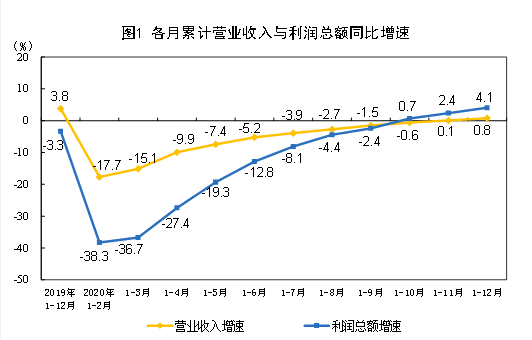2020年12月份,规模以上工业企业实现利润总额7071.1亿元,同比增长20.1%,增速比11月份加快4.6个百分点。