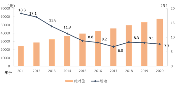 2020年全国城镇私营单位就业人员年平均工资为57727元,比上年增加4123元,名义增长[1]7.7%,增速比2019年回落0.4个百分点。扣除价格因素,2020年全国城镇私营单位就业人员年平均工资实际增长5.3%。