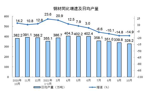 | 钢材(万吨) | 10174 | -14.9 | 112235 | 2.8 |