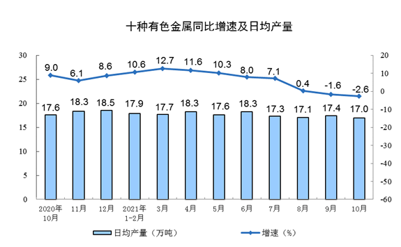 | 十种有色金属(万吨) | 526 | -2.6 | 5376 | 7.0 |