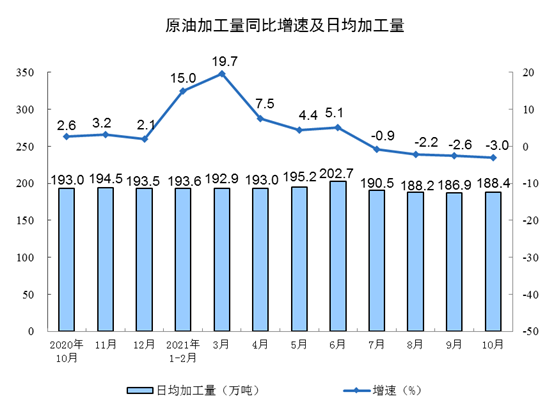 10月份,规模以上工业增加值同比实际增长3.5%(以下增加值增速均为扣除价格因素的实际增长率),比2019年同期增长10.6%,两年平均增长5.2%。从环比看,10月份,规模以上工业增加值比上月增长0.39%。1—10月份,规模以上工业增加值同比增长10.9%,两年平均增长6.3%。