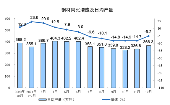 | 钢材(万吨) | 11355 | -5.2 | 133667 | 0.6 |