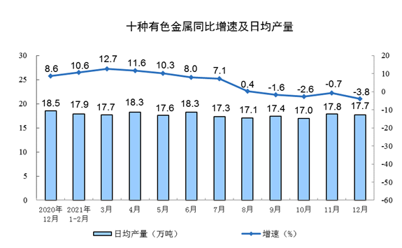 | 十种有色金属(万吨) | 547 | -3.8 | 6454 | 5.4 |
