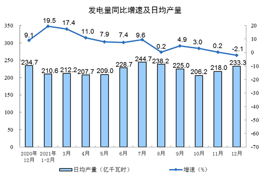 | 发电量(亿千瓦时) | 7234 | -2.1 | 81122 | 8.1 |