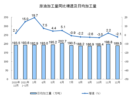 | 原油加工量(万吨) | 5873 | -2.1 | 70355 | 4.3 |