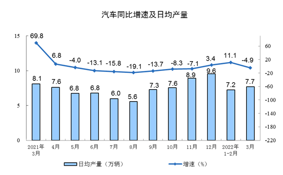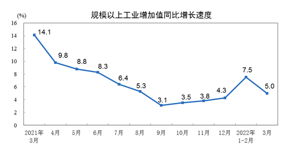 2022年3月份规模以上工业生产主要数据