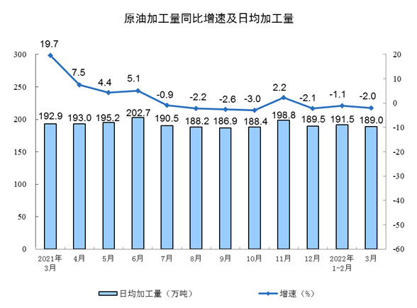 | 原油加工量(万吨) | 5859 | -2.0 | 17144 | -1.5 | |