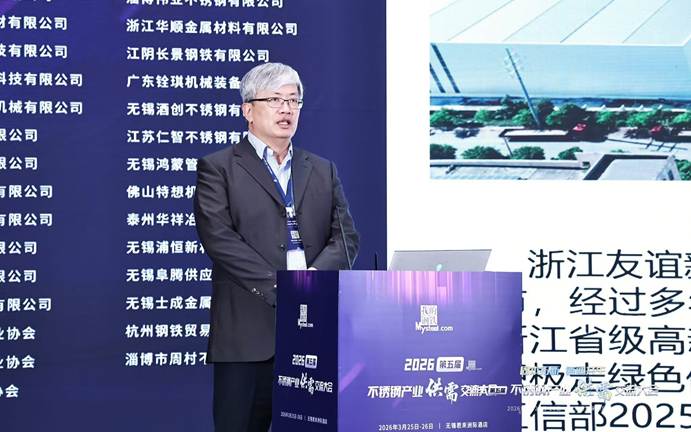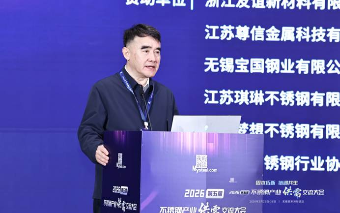 中国钢铁工业协会不锈钢分会秘书长刘艳平发表了题为《面向“十五五”,不锈钢行业的机遇和挑战》的主题演讲。她回顾了中国不锈钢发展历程,指出过去26年间中国不锈钢产量年均复合增长率达17.47%,远高于全球同期水平,2025年产量4087万吨占全球63.7%,人均消费量增至23.8kg,但与发达国家相比仍有增长空间。她认为,不锈钢发展机遇主要体现在建筑、机械、家电、汽车、能源、集装箱、船舶、电力等八大领域,传统行业转型升级与新兴产业发展将为不锈钢带来广阔市场。同时她也指出,行业面临供给压力增大、内卷式竞争加剧、高出口量恐难维持、贸易壁垒高筑、原料对外依存度高、低碳发展要求趋严等挑战,未来需通过品种结构优化、智能化转型、国际化拓展实现高质量发展。