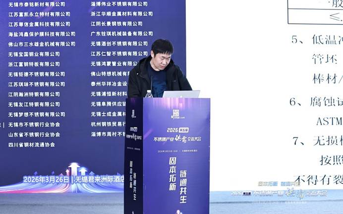 浙江友谊新材料有限公司销售副总经理李建国发表了题为《浙江友谊不锈钢长材定制化解决方案的落地实践》的主题演讲。他指出,浙江友谊坚持规范化发展,完成超低排放改造并入选工信部2025年“国家绿色工厂”,获GRS认证且全系列产品使用100%再生原料,通过ISO9001、DNV船级社等多项认证。他强调,差异化是企业定制化解决方案的核心,秉持“小而精、小而美”思路,聚焦品种钢开发,攻克连铸坯直穿技术,覆盖多系列可直穿钢种,构建全品类、多规格产品矩阵。公司拥有先进生产与全套检验设备,技术团队经验丰富,细分200多个内部牌号并支持新品开发,以成熟工艺和原料优势实现保质降本。未来,友谊新材将以可持续发展为核心,聚焦不锈钢品种钢、新材料细分领域,围绕研发新品种、联通产业链、建设研究院、输出细分价值、塑造行业品牌五大计划,以定制化服务赋能不锈钢长材产业升级。