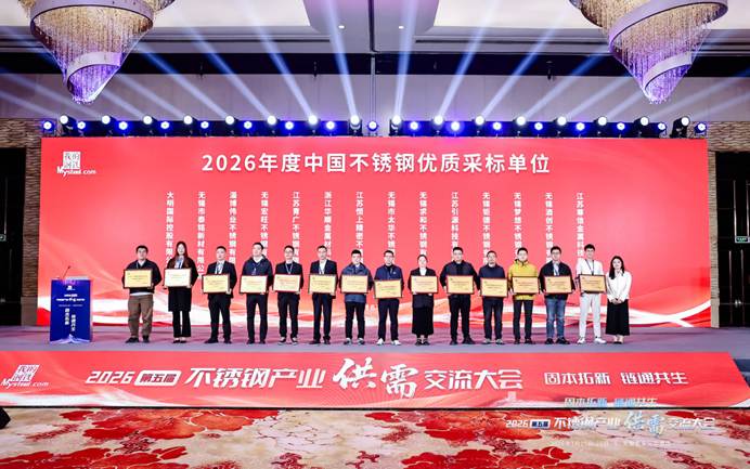 在全场嘉宾的共同见证下,会议进行了2026年度中国不锈钢优质采标单位授牌仪式,该榜单表彰了在市场价格信息采集工作中表现突出的贸易商,通过与上海钢联的紧密合作,为不锈钢行业价格发现与市场透明度提升作出了积极贡献。